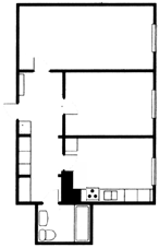 Vi bodde i en 2:a på 57 kvadrat på 18:e våningen.
